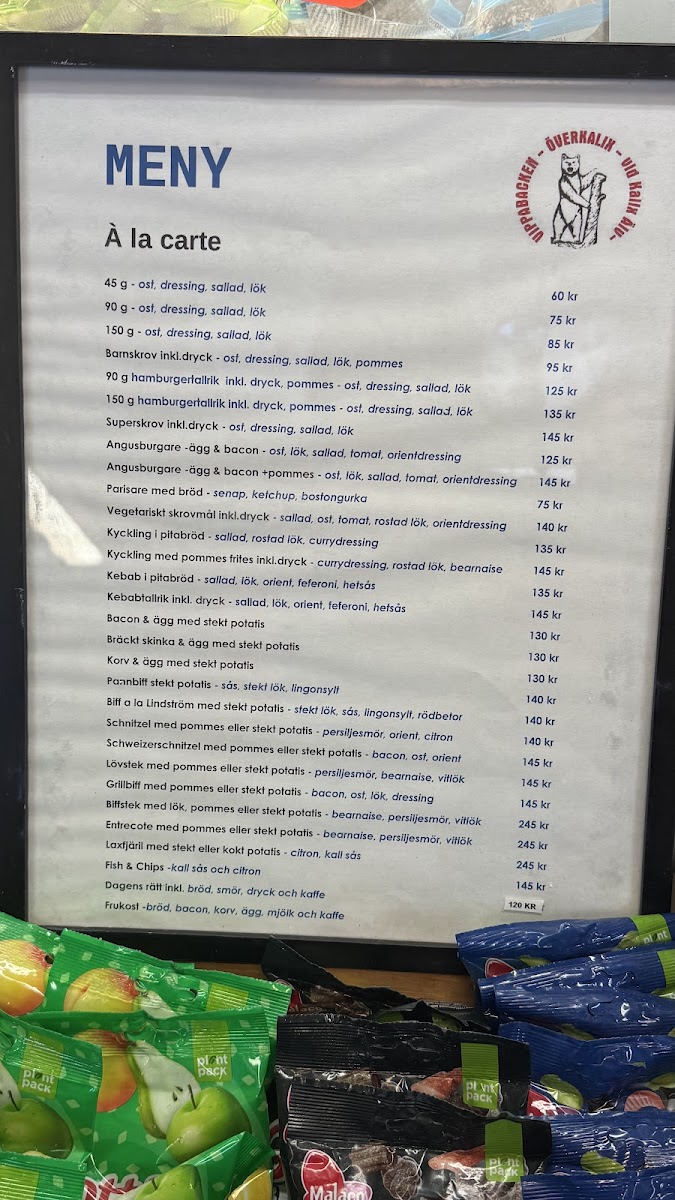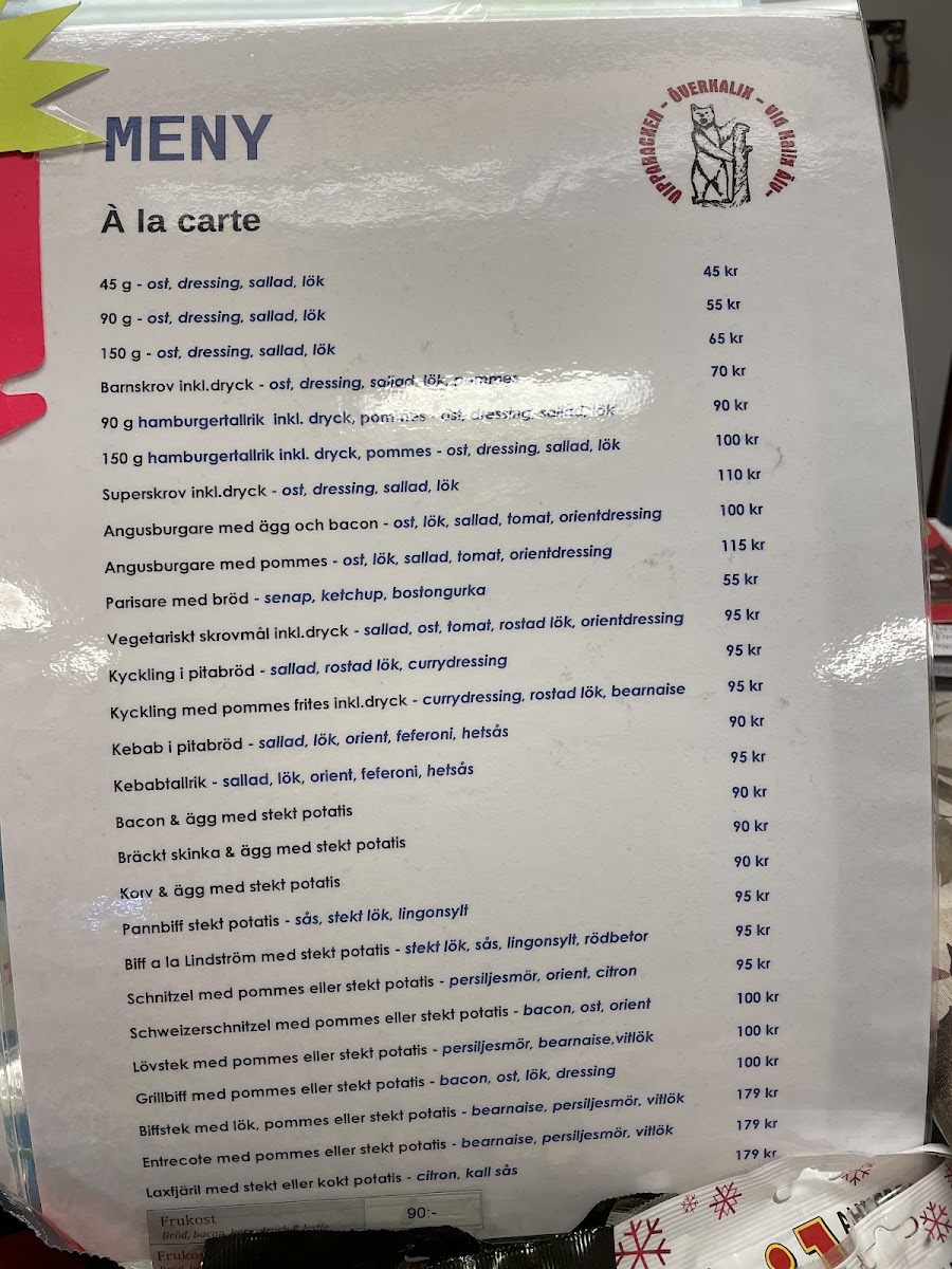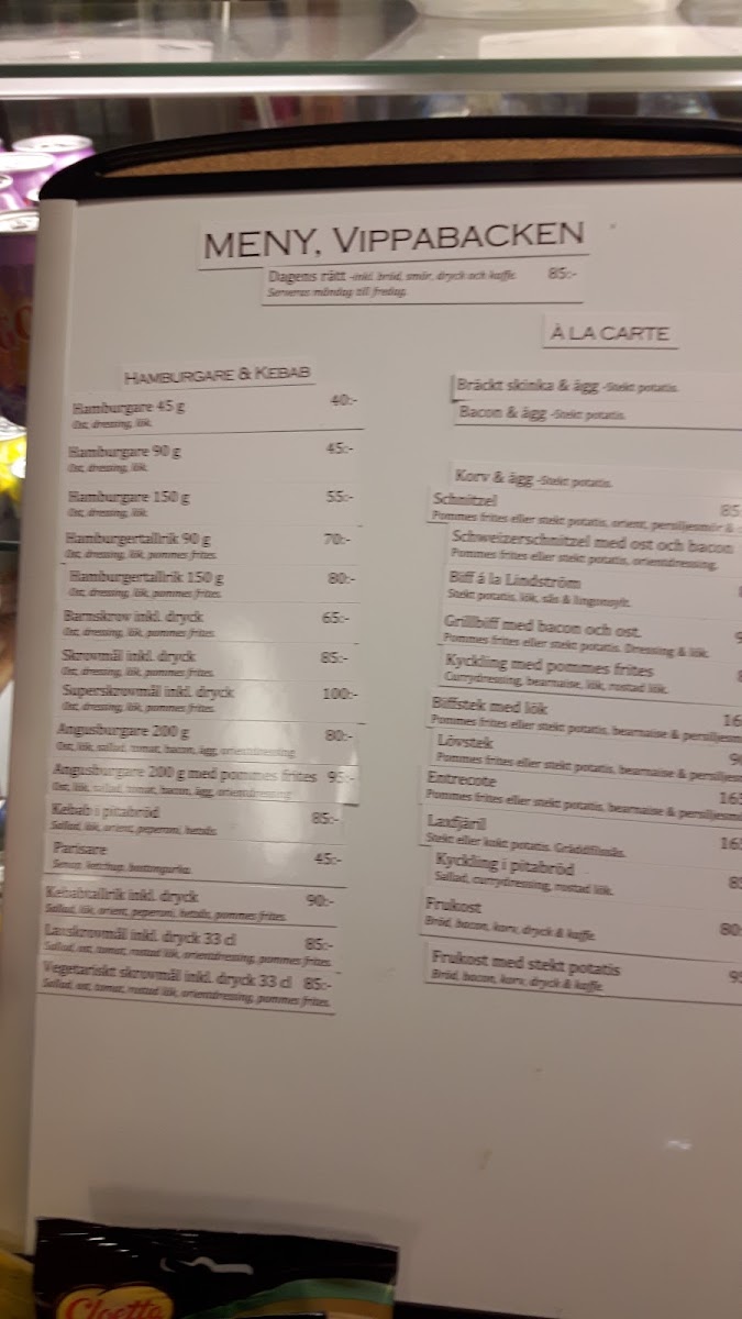 Introducing the menu at Vippabacken, a charming restaurant located in Överkalix, Sweden, on your journey to the Arctic Circle. Here, culinary delights meet a cozy atmosphere, creating an inviting space reminiscent of a museum with various intriguing artifacts. Customers rave about the generous portions, like the succulent hamburgers paired with crispy french fries that leave taste buds dancing. Signature dishes include the daily specials and the beloved schnitzel, perfect for a hearty lunch. Families appreciate the affordable prices and a play area for children, making it a great stop for travelers. Vegetarians are also catered for, ensuring everyone can enjoy the mouthwatering offerings. The attentive staff, like the kind girl with red hair, adds to the welcoming experience. Whether you’re taking a break or indulging in comfort food, Vippabacken promises a memorable dining experience with every visit.